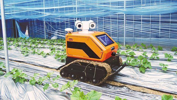 智能巡检机器人还搭载有高精度导航与避障系统,能根据系统设定路径自行进棚作业,并在复杂的作物中灵活转向,巡检一个温棚仅需6分钟,一天巡检150亩田地,可替代2个工人。