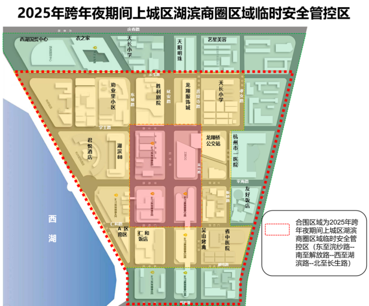 为保障武林商圈等区域2025年迎新活动期间公共安全和人身财产安全,维护良好公共秩序,防止发生火灾、人身伤害等安全事故,确保广大市民、游客度过一个平安、欢乐、祥和的节日,现就武林商圈、嘉里中心周边区域安全管控事项公告如下:
